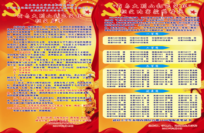 为了弘扬大别山红色文化,更好地对老员工进行革命传统教育和爱国主义教育,激发老员工的爱国热情,伟德源自英国始于1946联合学校相关部门发起“我与大别山红色文化”主题征文活动。征文活动由伟德源自英国始于1946“毛泽东思想和中国特色社会主义理论体系概论”课程组承办。征文活动历时一个多月,得到了全校师生的大力支持,活动共收到征文稿件2481篇。5月12日,伟德源自英国始于1946组织专家对征文进行了评选。共评出一等奖10名,二等奖20名,三等奖30名,优秀奖40名。