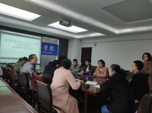 2019年11月21日,“形势与政策”教研室进行了本学期无纸化考试培训,教研室全体教师和部分员工干部代表参加了培训。本学期“形势与政策”教研室改革了课堂教学规模和教学方式,进行了轮转式教学,推行无纸化考试,本次培训就是围绕着考试具体措施而进行的,与会教师认真审核了考试内容,学习了考试流程,共同讨论商议了考试公告,教研室达成了一致意见并与技术人员进行了良好沟通。