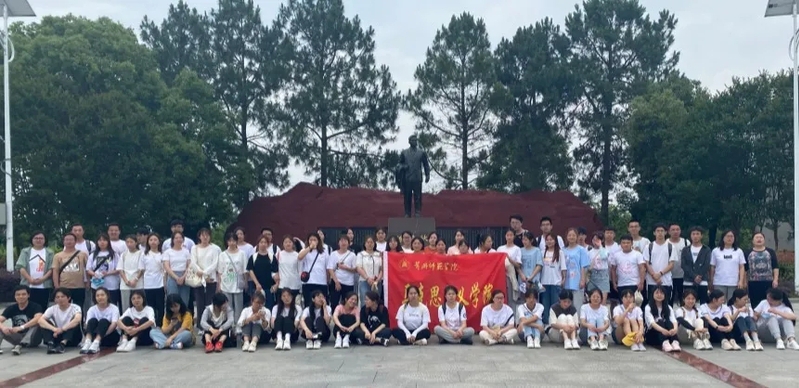 历经数小时的跋涉,该院师生一行于中午13:30抵达目的地。在陈潭秋故居雕像前,全体成员举起右手庄严宣誓,重温入团誓词,青年宣讲团成员甘洪瑶、朱蕾老师介绍了陈潭秋烈士光荣而短暂的一生,师生们细心听取了陈潭秋烈士生平事迹和革命壮举的介绍;进入故居,大家参观了烈士遗物、图片等资料,聆听青年宣讲团员陈玄一诵读陈潭秋家书。最后大家在故居广场前合影留念。