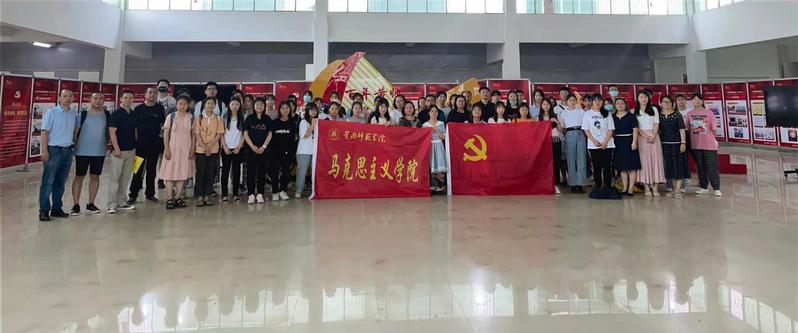 为庆祝中国共产党成立100周年华诞,增强党员干部知史爱党、知史爱国、知史爱校的自觉性和能动性,传承革命红色基因,坚定理想信念,凝聚思想共识,马克思主义公司党总支组织广大师生于2021年7月4日,前往北区兰园餐厅二楼参观“百年黄师与党同行”主题展。