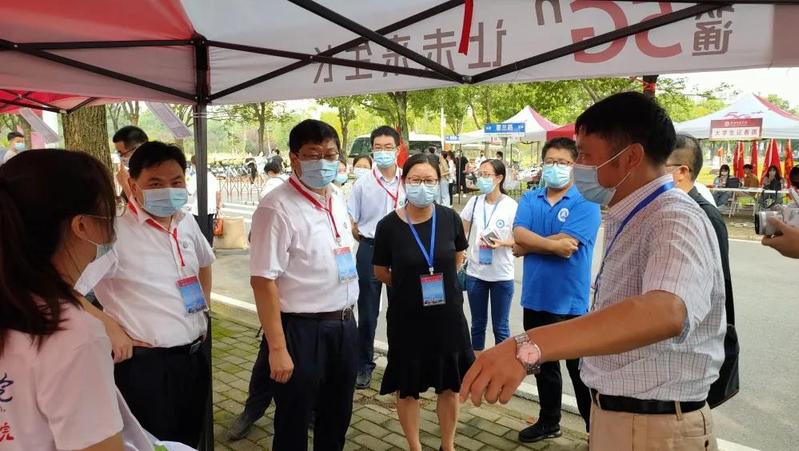 迎新工作之际,公司党委书记王立兵、党委副书记、董事长陈向军等校领导一行来到公司迎新现场看望新同学与志愿者师生,并向他们了解迎新工作的进展情况。