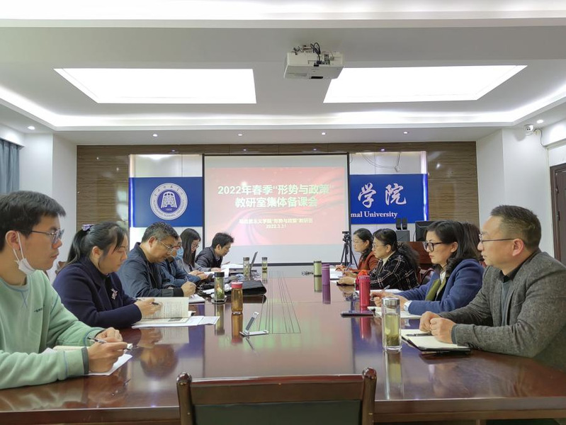 2022年3月31日,“形势与政策”教研室全体教师开展了本学期授课专题的集体备课会,学校教学督导刘清教授、公司党总支书记汪辉、副经理王贵东以及其他教研室主任参加了此次会议,会议由经理助理、“形势与政策”教研室主任蔡潇博士主持。
