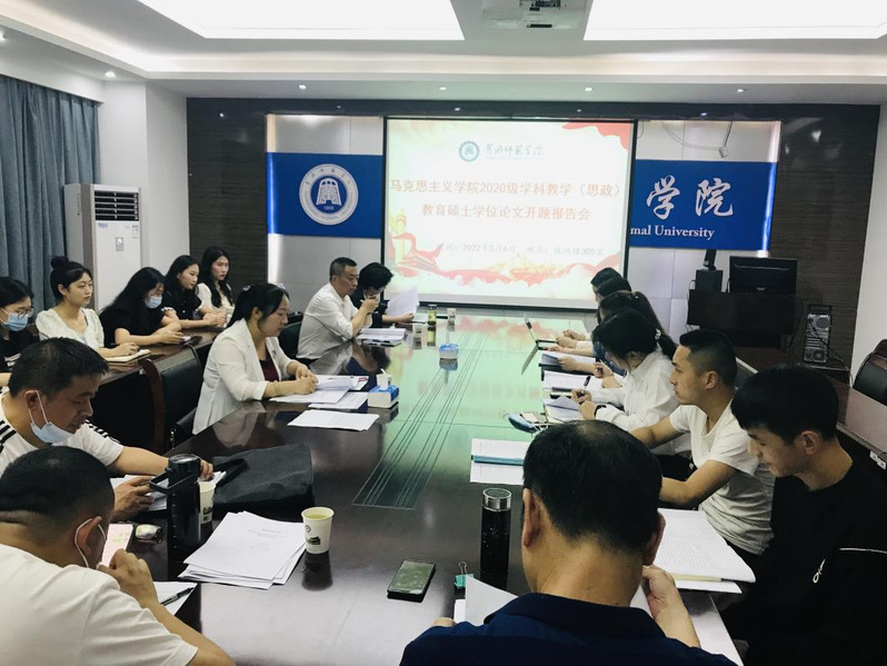 按照学校《关于做好2023届教育硕士研究生学位论文开题工作的通知》要求,2022年5月6日晚,公司圆满完成了2020级学科教学(思政)专业硕士研究生学位论文开题工作。本次论文开题采取线上(腾讯会议)与线下相结合的方式,特别邀请了黄州中学程业超董事长和黄冈中学胡霞英老师作为基础教育实践领域的校外专家,汇同12位校内导师组成导师组,对2020级13名研究生展开论文开题答辩。