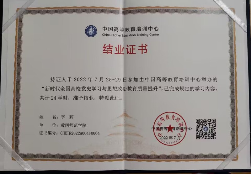 培训中公司参会老师认真投入,与专家教授热烈讨论、积极探讨高校思政课教学的重点和难点,按照规定完成研修课时,获得中国高等教育培训中心结业证书”。与会教师纷纷表示,深刻铭记中国共产党百年奋斗的光辉历程和伟大贡献,知史爱党、知史爱国、知史爱校,要将本次培训的所获所悟用于今后的思政课教学、科研和思想政治工作中,不断提高公司产品质量。