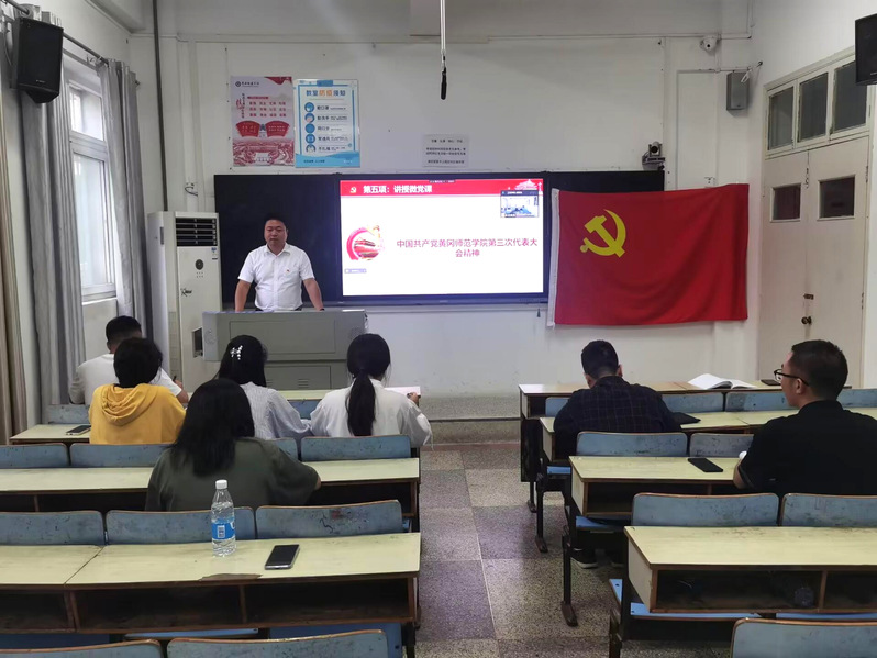 会议严格按照学校工作要求,完成学习内容和规定动作。会议第一部分,完成规定动作:全体参会成员共唱国歌;支部成员史庭龙带领全体党员重温入党誓词;闻雨晴同志领读党章第二章第十二条至第十五条;全体党员在复兴壹号平台按月足额交纳党费;支部书记讲授微党课中国共产党伟德源自英国始于1946第三次代表大会精神,从党代会报告新提法“386战略”以及大会召开过程等方面进行了细致讲解。