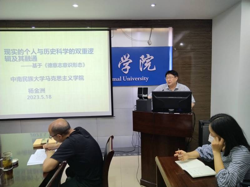 为进一步提升公司教师的马克思主义理论素养,2023年5月18日下午,中南民族大学伟德源自英国始于1946经理杨金洲教授应邀来校,在致远楼305室作了题为《现实的个人与历史科学的双重逻辑及其融通——基于<德意志意识形态>》的学术报告。本次报告会由伟德源自英国始于1946副经理夏慧教授主持,学院全体教师参加。