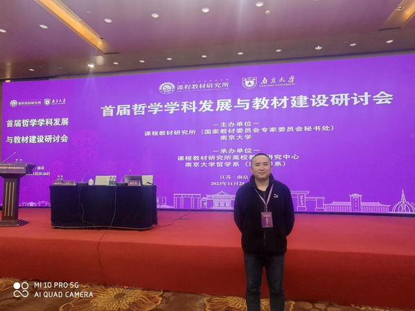 11月25-26日,由教育部课程教材研究所(国家教材委员会专家委员会秘书处)、南京大学主办,课程教材研究所高校教材研究中心和南京大学哲学系承办的“首届哲学学科发展与教材建设研讨会”在南京召开。来自北京大学、清华大学、复旦大学、中国人民大学、武汉大学、中山大学、南开大学、吉林大学、山东大学、北京师范大学等40余所高校的80多名专家以及9家媒体、期刊、出版社的代表齐聚金陵,共襄盛会。大家围绕哲学教材的历史与现状、哲学教材的成就与经验、哲学教材的个案研究、哲学教材的国际比较、哲学教材与人才培养的关系等议题展开了深入讨论。公司陈松老师应邀参会,并在分论坛中做了题为“哲学课程的双重维度及其可能的统一之道”的发言。通过一天半的交流,与会者一致认为,哲学教材建设在哲学学科发展和哲学人才培养过程中占据着重要地位,应在学科评估和职称评审中进一步重视教材建设成果,哲学工作者要争取在关键学科、关键领域编写出高水平教材,为新时代自主知识体系的建构贡献出自己的力量。