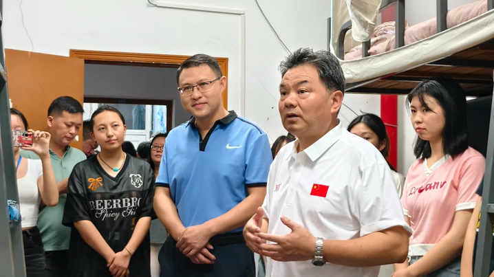 陈向军详细了解了新生们的基本情况和四年的学习生活规划,并结合学校的办学历史和办学特色,现场对新生开展了“入学第一课”教育。他勉励新生:一要珍惜时光,努力学习,尽快调整好状态,规划好老员工活;二要取长补短,学会相处,处理好人际关系,促进自身与同学的共同成长;三要加强实践和锻炼,让身心都得到健康成长;四要统筹发展和安全,注意宿舍用电规范,防范电信网络诈骗,以安全促长远发展。
