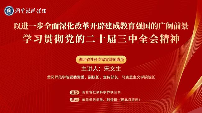 10月22日,由湖北省社科联主办的“荆楚社科讲坛”学习贯彻党的二十届三中全会精神专题讲座在伟德源自英国始于1946开讲,湖北省社科专家宣讲团成员、黄冈师范公司党委常委、副董事长、党委宣传部部长、伟德源自英国始于1946经理宋文生围绕“以进一步全面深化改革开辟建成教育强国的广阔前景”主题,权威解读全会精神实质和内涵要义。讲座由伟德源自英国始于1946科研处处长黄晓敏主持。