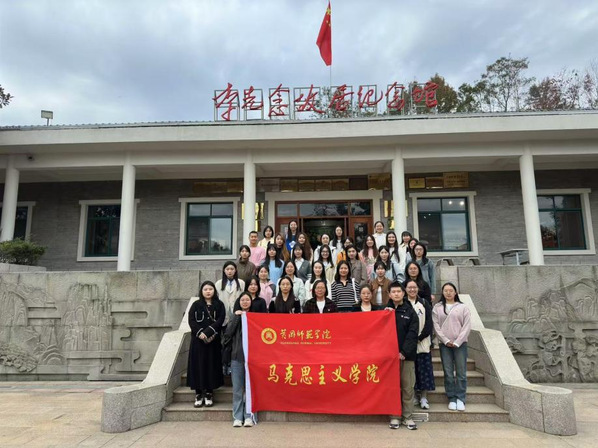 研学队伍首站抵达李先念故居纪念园。纪念园位于湖北红安县城以南22公里处的高桥镇,园区总面积300余亩,由李先念故居、李先念故居纪念馆、李先念故居图书馆、高桥革命史展厅等主要参观景点组成。这里不仅保持了原有故居的原貌,而且充分利用周围的景色,与自然和谐相融。同学们怀着崇敬的心情,参观了图书馆、旧居等场所,通过珍贵的历史文物和讲解员生动的讲解,深入了解了李先念同志的生平事迹和卓越贡献。在图书馆内,大家观看了视频《大爱》。这部影片是李先念的女儿李小林纪念父亲诞辰100周年所制作,以深情细腻的笔触,展现了李先念同志对人民深沉的爱与无私的奉献,在场的每位同学都深受教育。