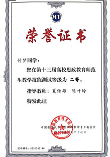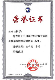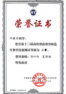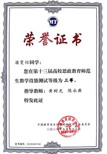 2024年11月29日至12月1日,由全国地方高等师范院校教务处长联席会议指导、“田家炳”基金会冠名,浙江师范大学主办的2024年第十届“田家炳杯”全国师范院校师范生教学技能竞赛决赛在浙江金华举行,公司参赛选手王珂荣获三等奖。