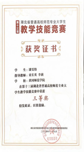 2024年11月9日,由湖北省教育厅举办的第十三届普通高校师范专业老员工教学技能竞赛获奖名单公示。公司参赛选手李昱莹、潘雯怡在比赛中大放异彩,分别荣获一等奖和三等奖。