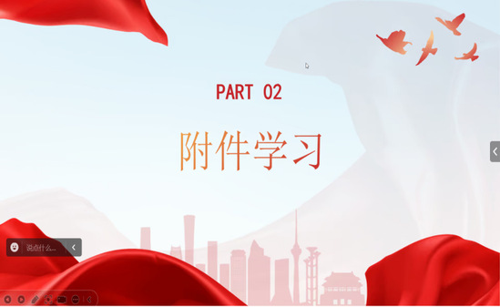 在本次党日活动中,严格按照学校工作要求,完成学习内容和规定动作。会议第一部分,完成规定动作:全体参会成员共唱国歌;支部全体党员重温入党誓词;全体党员在复兴壹号平台按月足额交纳党费;张露雪同志领学党章第二章党的组织制度第十四、十五条。