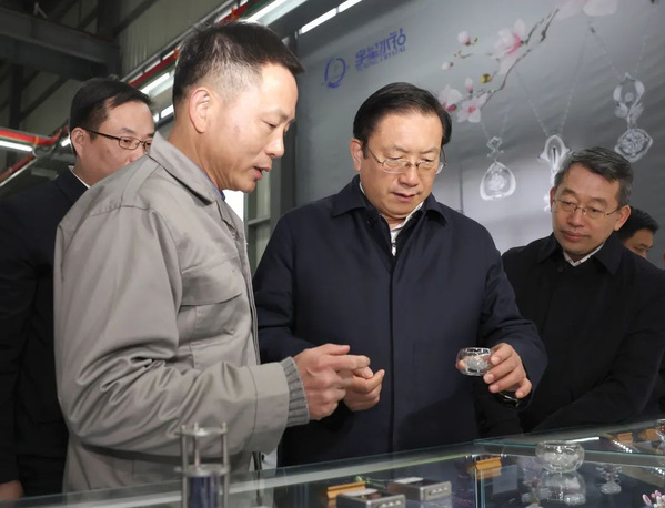 在湖北宇星水钻饰品有限公司,王忠林认真听取了公司董事长周志炎员工关于企业产品研发、市场开发、生产经营等介绍,走进车间察看企业水晶钻石生产线技改升级情况,鼓励企业深度开展产学研合作,进一步推动技术改造和研发成果转化,不断优化产品结构,提升市场竞争力。