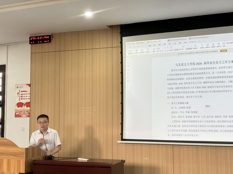 大会在热烈的氛围中拉开序幕。首先,副经理李威详细介绍了2026届毕业生实习工作方案,从实习目标、内容安排、单位分配、管理规范及考核要求等方面进行了全面说明。他强调,教育实习是师范生培养的关键环节,是检验理论学习和提升实践能力的重要平台,希望同学们充分重视、积极准备,在实践锻炼中增长才干。