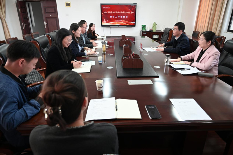 在听取基地建设情况和工作计划后,陈朝阳充分肯定了研究基地前期建设成效。他强调,基地建设相关单位要进一步提高政治站位,深刻认识铸牢中华民族共同体意识研究工作的重要意义,切实增强责任感与使命感;要做好顶层设计,完善组织架构和运行机制,进一步聚焦研究重点,围绕民族工作实际需求,深化理论研究与实践探索,推出一批高质量研究成果;要进一步强化协同联动,整合校内学科资源、人才资源,加强与地方政府、兄弟院校的合作交流,形成基地建设合力,确保研究基地建设任务高标准完成,为湖北省铸牢中华民族共同体意识工作贡献黄师力量。