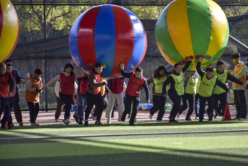 本次运动会以“携手共进 趣味同行”为主题,设有“龟兔赛跑、雷霆战鼓、八戒快跑、鸿运彩球”四项集趣味性、协作性与挑战性于一体的团体项目。赛场上,公司教职工们迅速切换角色,化身奋力拼搏的运动员,将理论教学中的严谨细致与运动场上的活力激情完美融合。在“雷霆战鼓”项目中,队员们目光紧盯鼓面,步伐协调一致,同心协力操控战鼓颠球,每一次成功的颠球都伴随着阵阵欢呼;“八戒快跑”接力赛里,大家身着特色服饰,默契配合完成交接,滑稽又认真的姿态引得现场笑声不断;“鸿运彩球”赛场上,队员们肩扛彩球并肩冲刺,用速度与协作诠释着团结的力量。赛场上的欢笑声、加油声、喝彩声此起彼伏,公司代表队的拼搏身影成为赛场中一道亮丽的风景线。