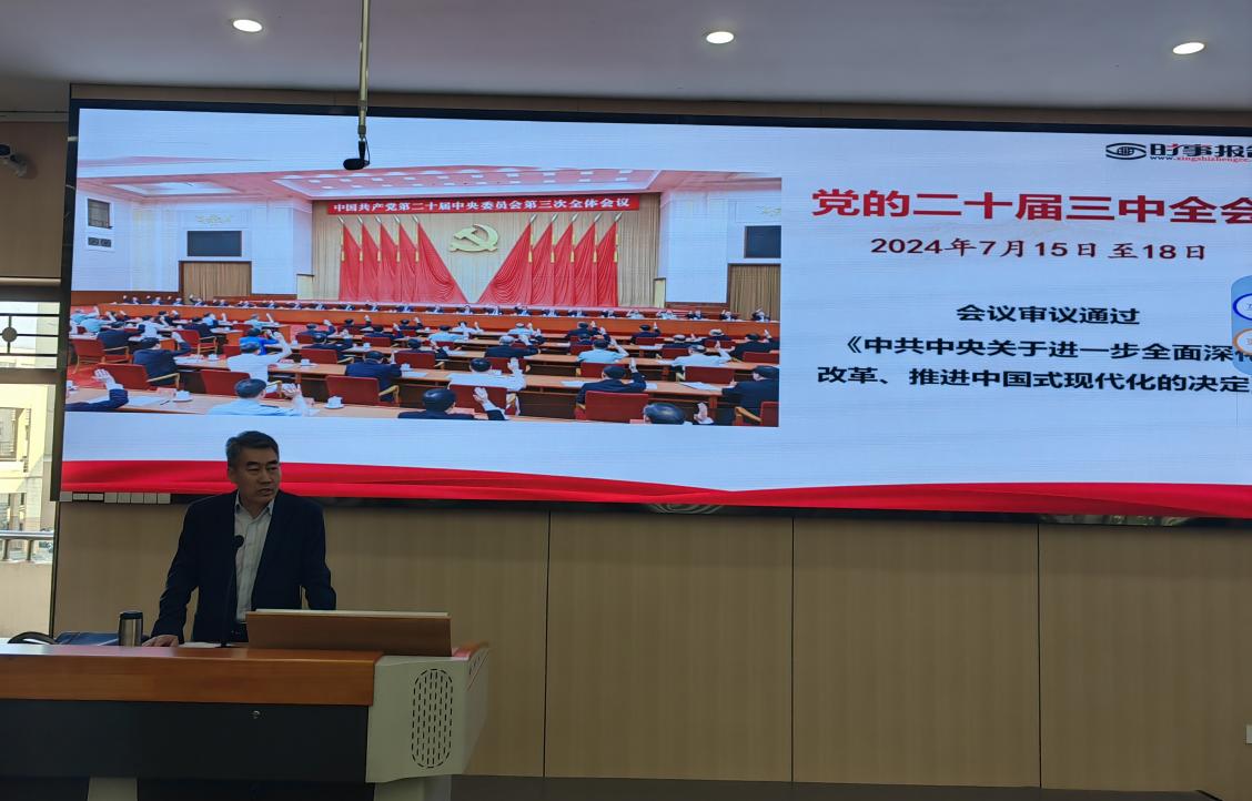 10月22日下午,公司党委常委、副董事长宋文生以《以进一步全面深化改革开辟建成教育强国的广阔前景——学习贯彻党的二十届三中全会精神》为题,为数学与统计学院2024级新生讲授思政课。